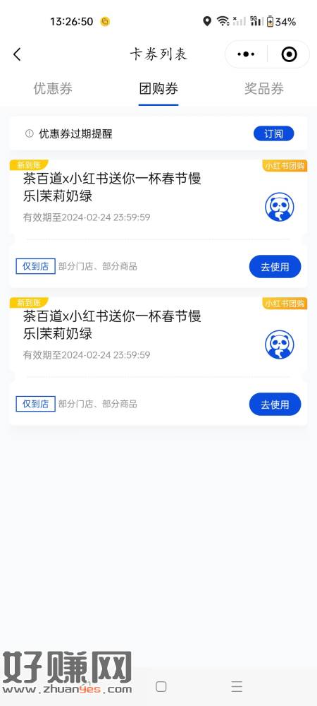 小红书搜:大家的春节,店铺打卡和上传电影票领两杯免费奶茶