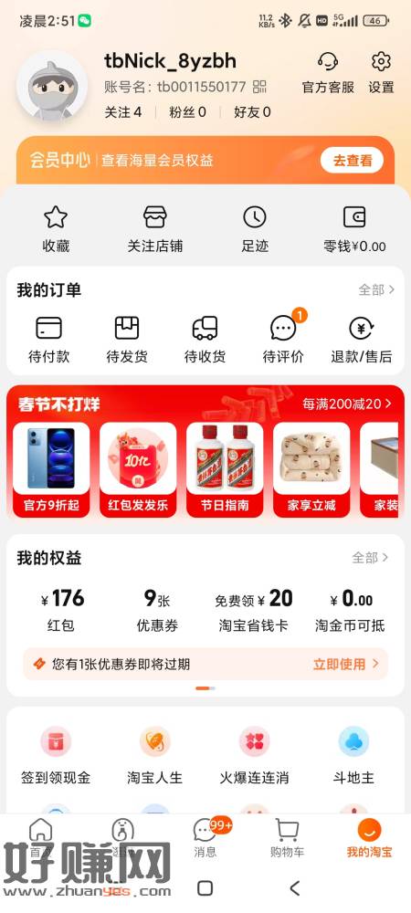 淘宝-我的淘宝-会员中心,如图,部分号有5亓天猫无门槛