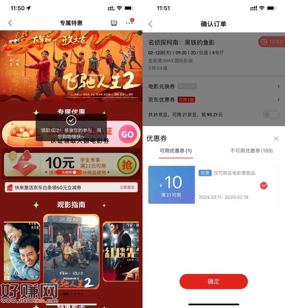 【京东学生领21减10亓电影票券】仅限京东学生参与!打开活动地址->领21减10元券->有挺多电影可以用的,今年春节假期的电影都还不错!
