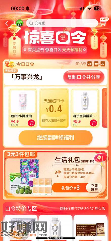 今日猫超右下惊喜口令输入[ 万事兴龙 ]翻牌就有猫超卡