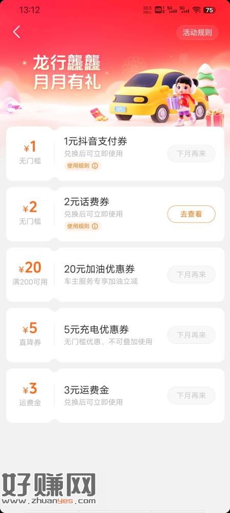 抖音-我-我的钱包-车主服务-月月有礼