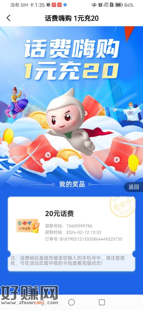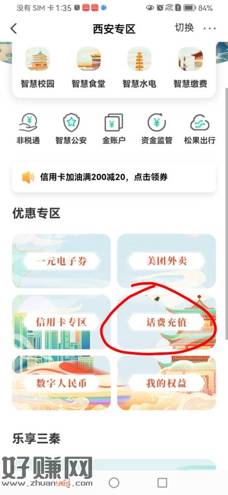 农行陕西 城市专区西安 1元买20话费