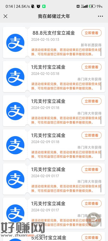 我在邮储过大年 2024能量 中了88.8 哈哈哈哈