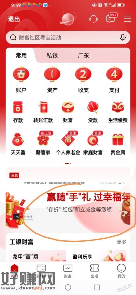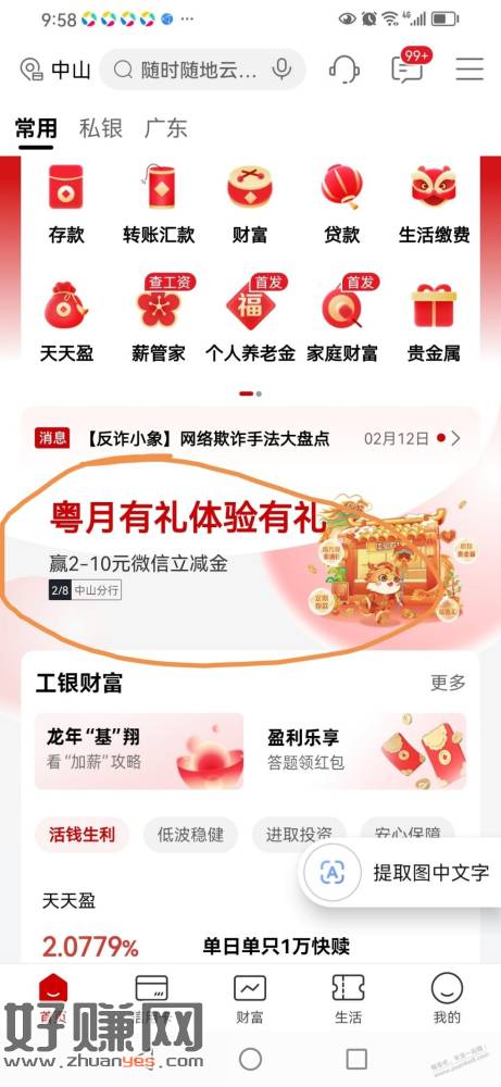 首页,中间滚动条,粤月有礼体验有礼 , 赢随手礼过幸福年,全部做完任务可获30左右微信立减金。