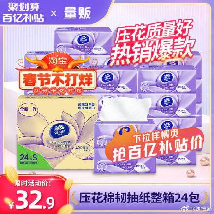 百亿补贴,32.9亓 ,维达抽纸立体美24包整箱