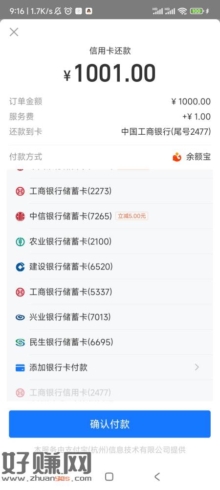 zfb信用卡还款 中信1000-5 陕西卡