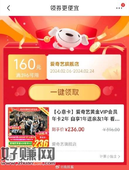 爱奇艺黄金VIP会员年卡2年,236 元, 自享