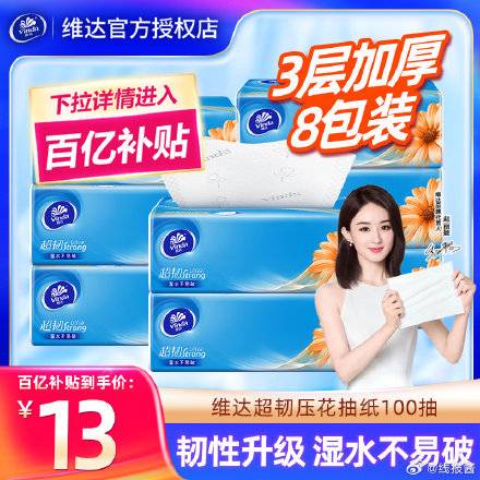 百亿补贴,13亓,维达! ,超韧抽纸加厚100抽*8包
