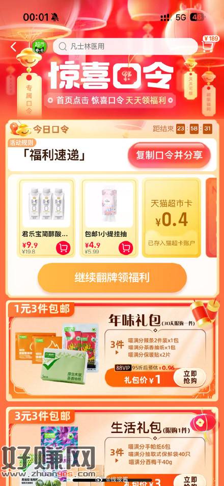 猫超今天惊喜口令是[ 福利速递 ]翻牌就有猫超卡