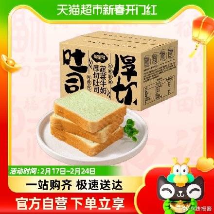 消灭猫超卡,4.9亓 ,福事多蔬菜牛奶厚切吐司170g,