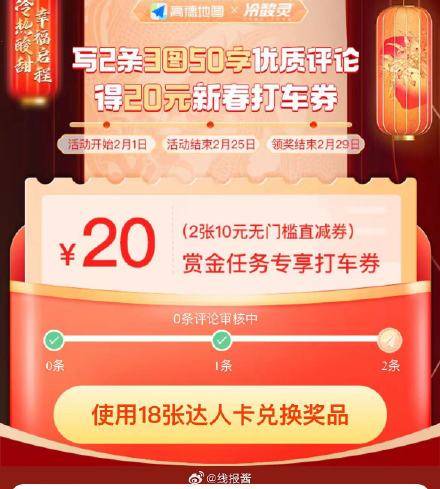 高德打车小程序每天都可以做任务领腾讯月卡