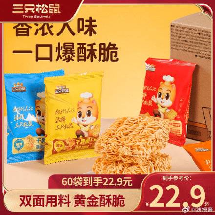 19.9元,三只松鼠 干脆面 60包/箱4种混合口