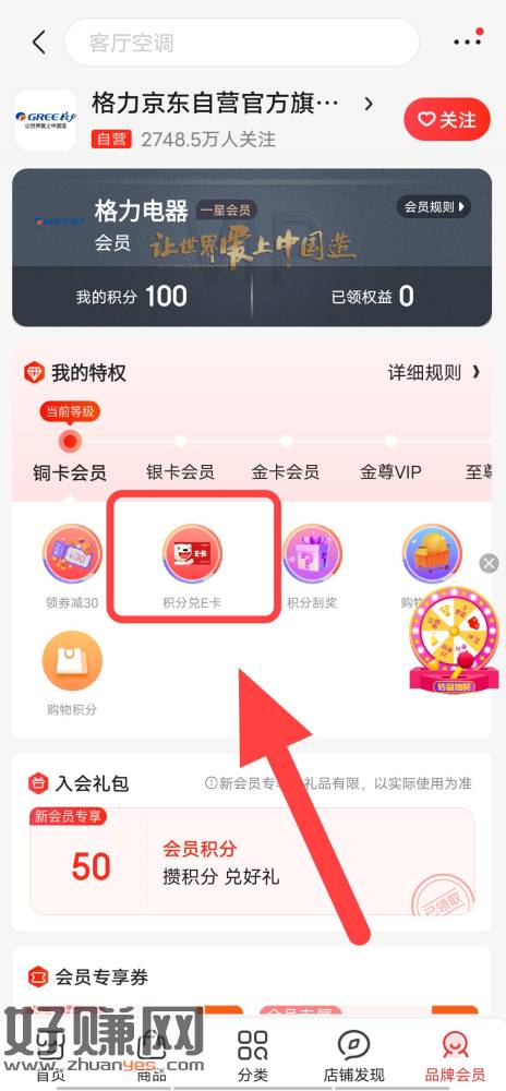 京东店铺-格力京东自营官方旗舰店-入会100积分-兑换1京东ek 还有6k份