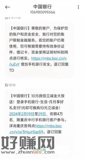 中行重庆支付1得10立减金,生活月月有礼,限量4万