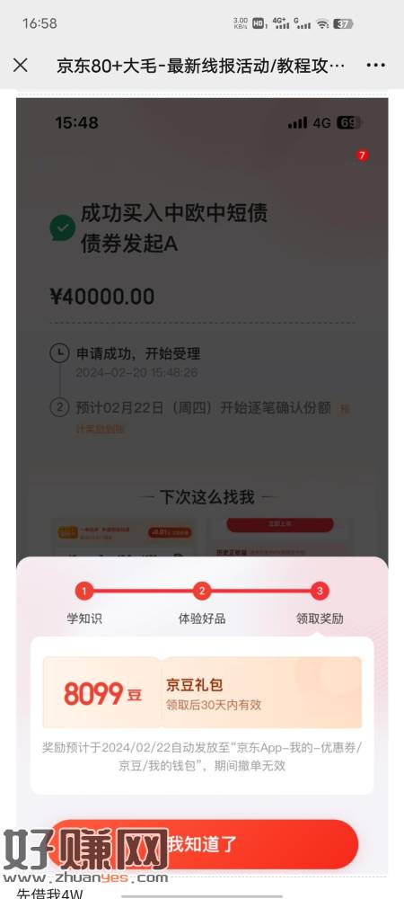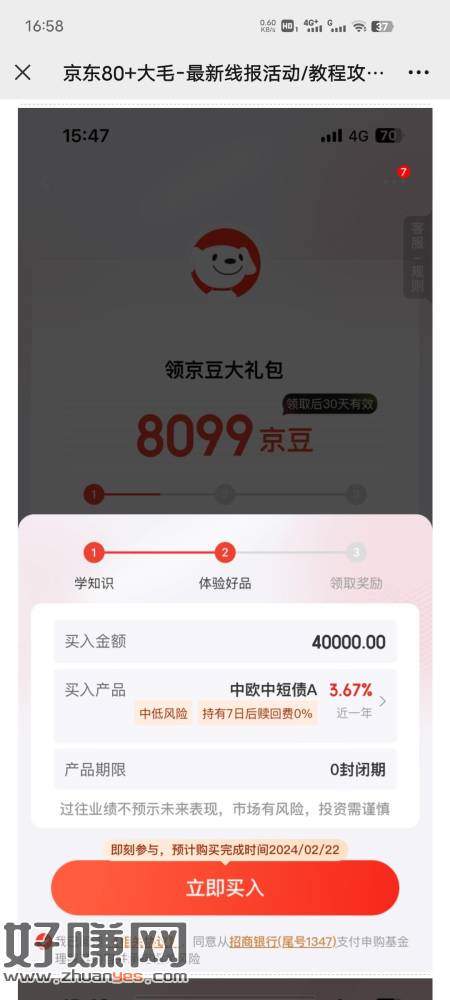 京东首页钱包位置财富点进去。4万买基金领8099京豆 随时赎