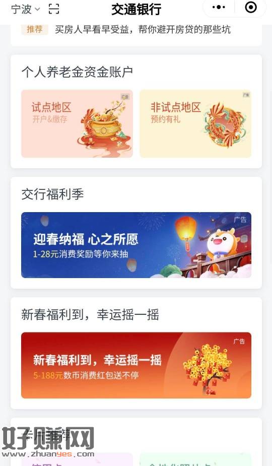 交通银行小程序宁波新春福利摇奖赢好礼,交通银行小程序切换宁波