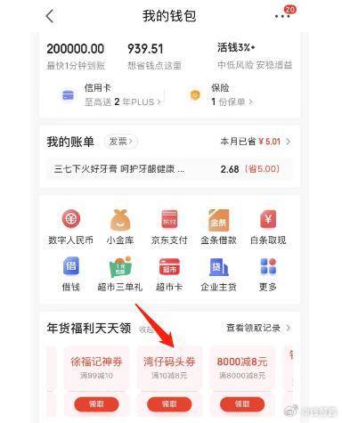 狗东APP,我的钱包,福利天天领,找到湾仔码头10
