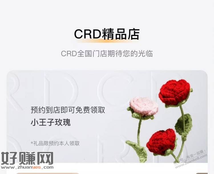 vx小程序:CRD克徕帝官网 首页预约到店 可领小王子玫瑰 自测