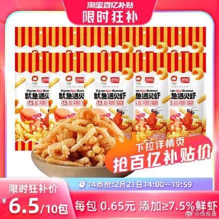 百亿补贴6.9亓 ,盼盼鱿鱼遇见虾23g*10包