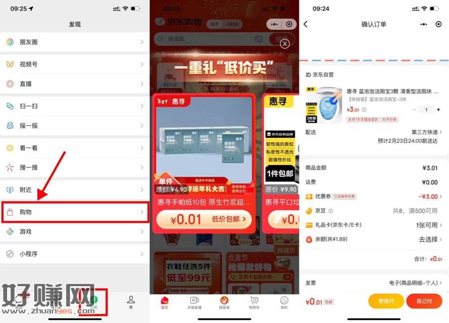 【京东部分人0.01元撸实物包邮】新一期!进入“微信-发现-购物”->大部分人自动弹出0.01亓实物,任选一个都是包邮的