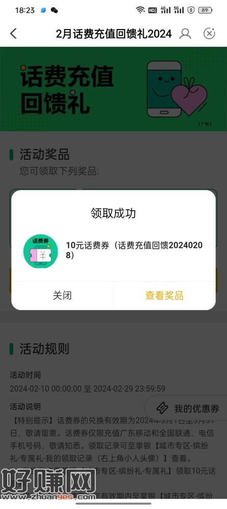 [ 深圳农行 ]您的话费充值回馈礼待领取,免费领10元话费,戳
