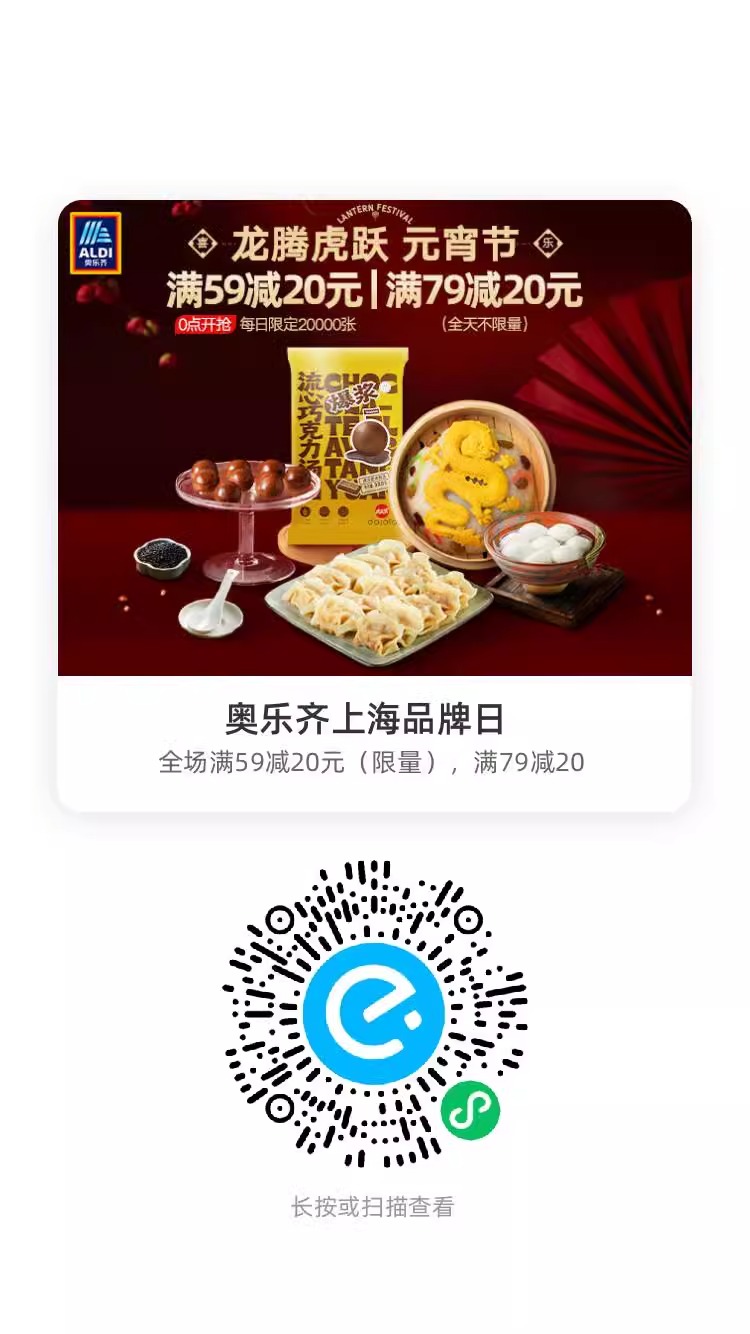 上海地区,饿了么奥乐齐50-20,叠加会员可以59-27,页面显示59-20限量