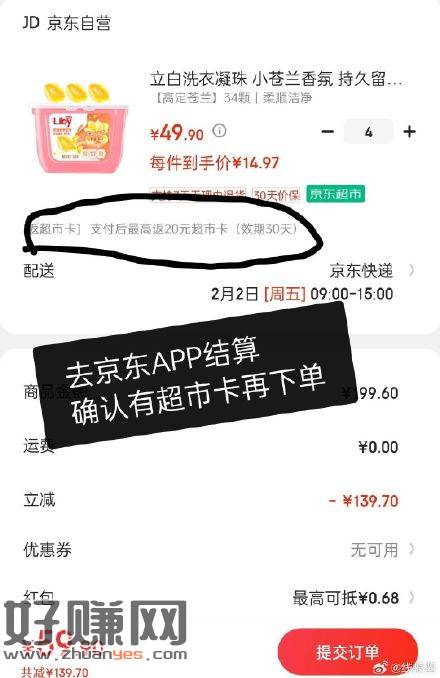 ❷去京东APP结算
