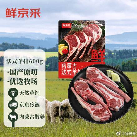 鲜京采 原切法式羔羊排 600g ,————