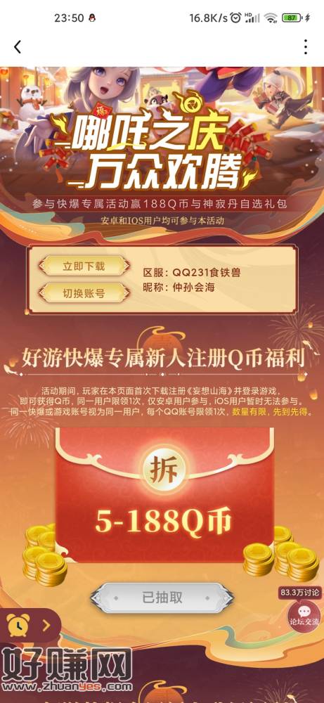 好游快爆 妄想山海新5q币+使命召唤新3q币回归2