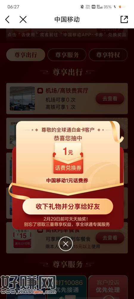 中国移动 全球通 抽奖