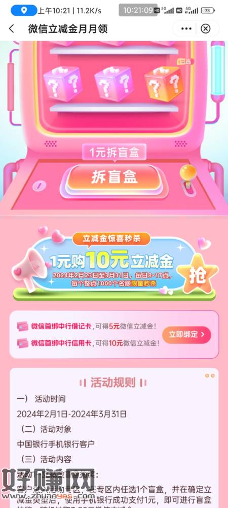 中行搜微信 点进去 每个整点 抢1买10立减金 与1换3盲盒活动冲突