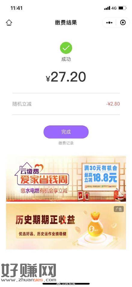 【光大银行】云缴费爱家省钱周来喽!即日起至2月29日,在云缴费APP或官方小程序用“微信支付”或“财富钱包(限缴费宝用户)”缴水、电、燃满30元有机会享最高18.8元随机立减,数量有限享完即止。