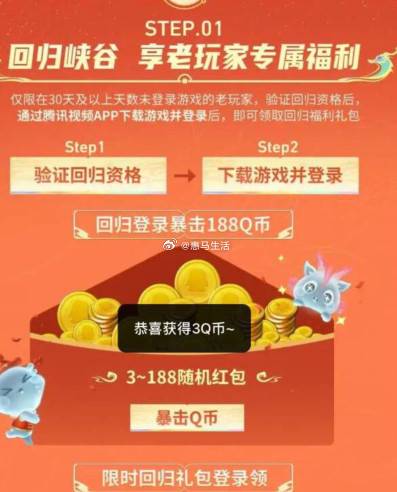 王者荣耀登陆回归大区领3Q币