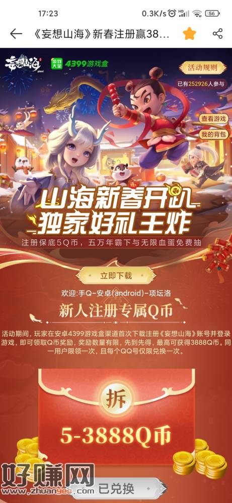 4399游戏盒 妄想山海限新5q币 有号去