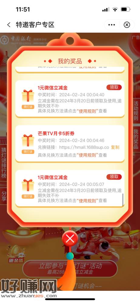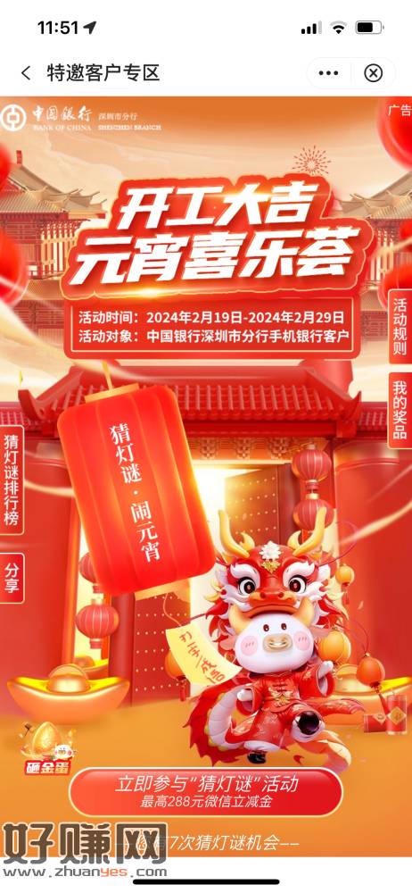 深圳中行猜灯谜立减金