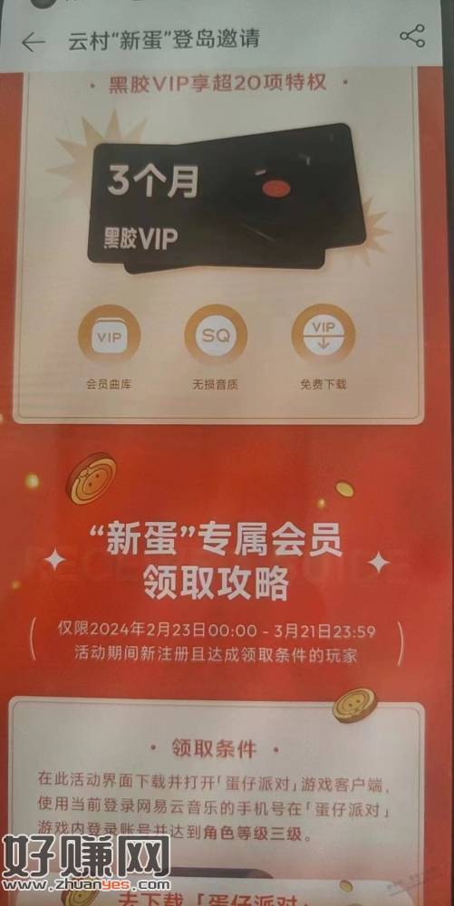 网易云搜索蛋仔派对,新用户得三月会员