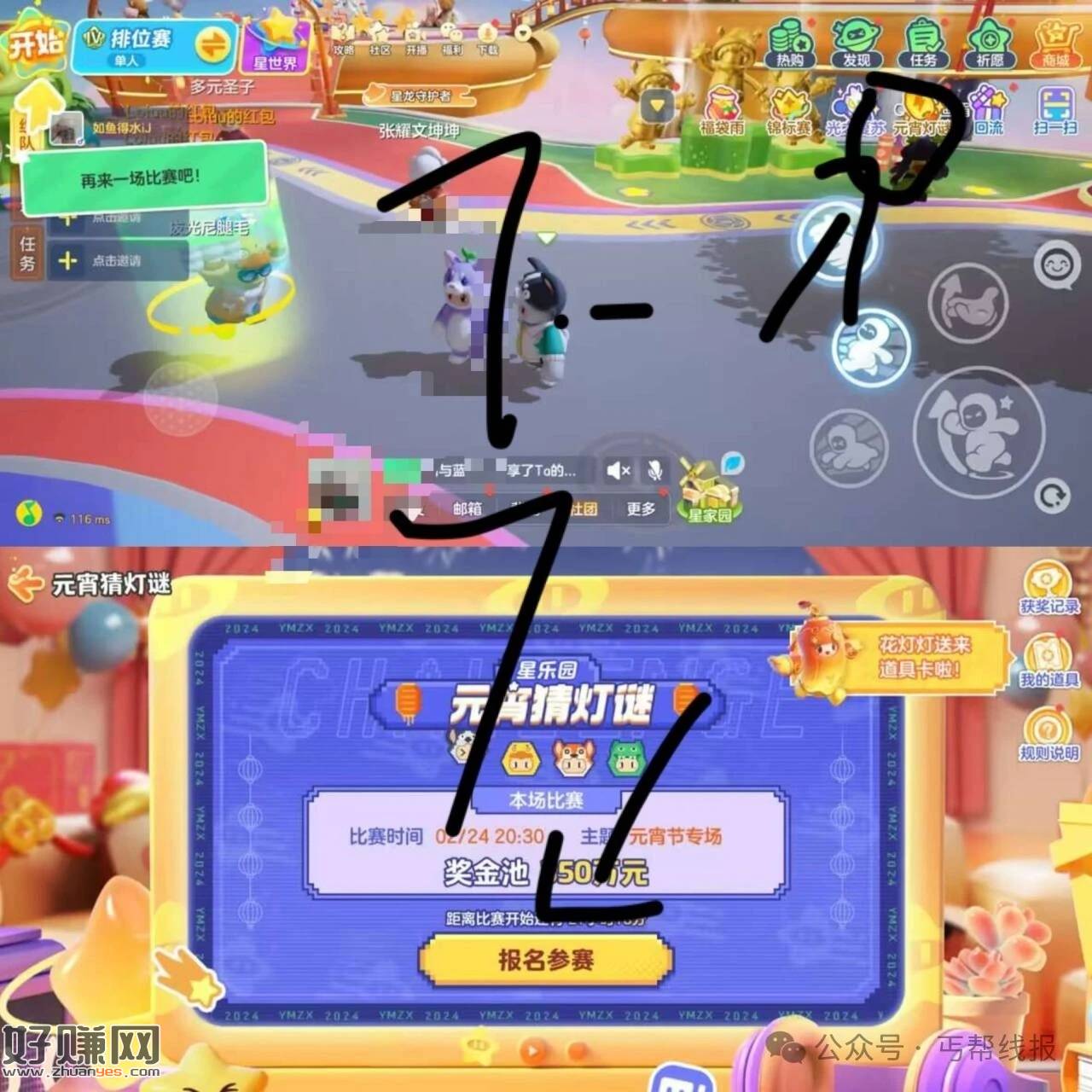 元梦游戏内 右上角元宵灯谜答题 要先去预约报名才能进