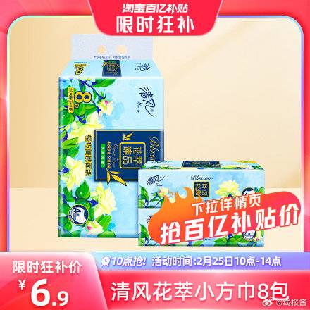 10点,百亿补贴6.9亓 ,风花萃车载纸巾4层20张8包