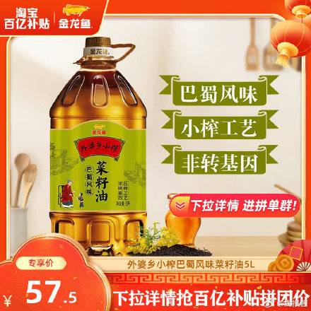 57.5 金龙鱼 ,外婆乡菜籽食用油5L