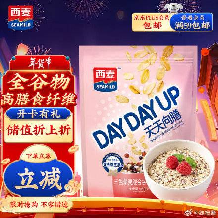 先领25-12元券 ,西麦 三色藜麦混合谷物燕麦片450g