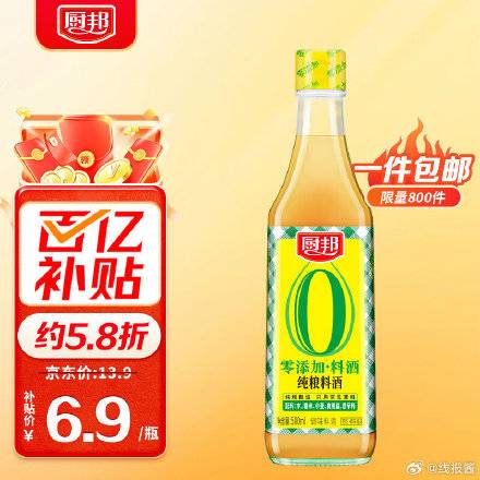 厨邦 家用0添加纯粮酿造料酒500ml*1瓶