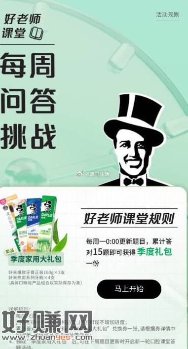 【黑人牙膏每周答题领季度礼包】微信打开地址->每周1一道题目,连续答对15周领黑人牙膏礼包(牙膏160g*3支+牙刷4支)