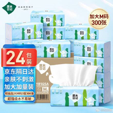 原木日记 抽纸24包 ,190*140mm3层100抽