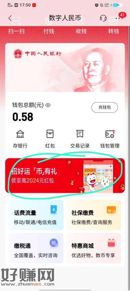 招行看图,没弄过的给0.58直接到数币钱包