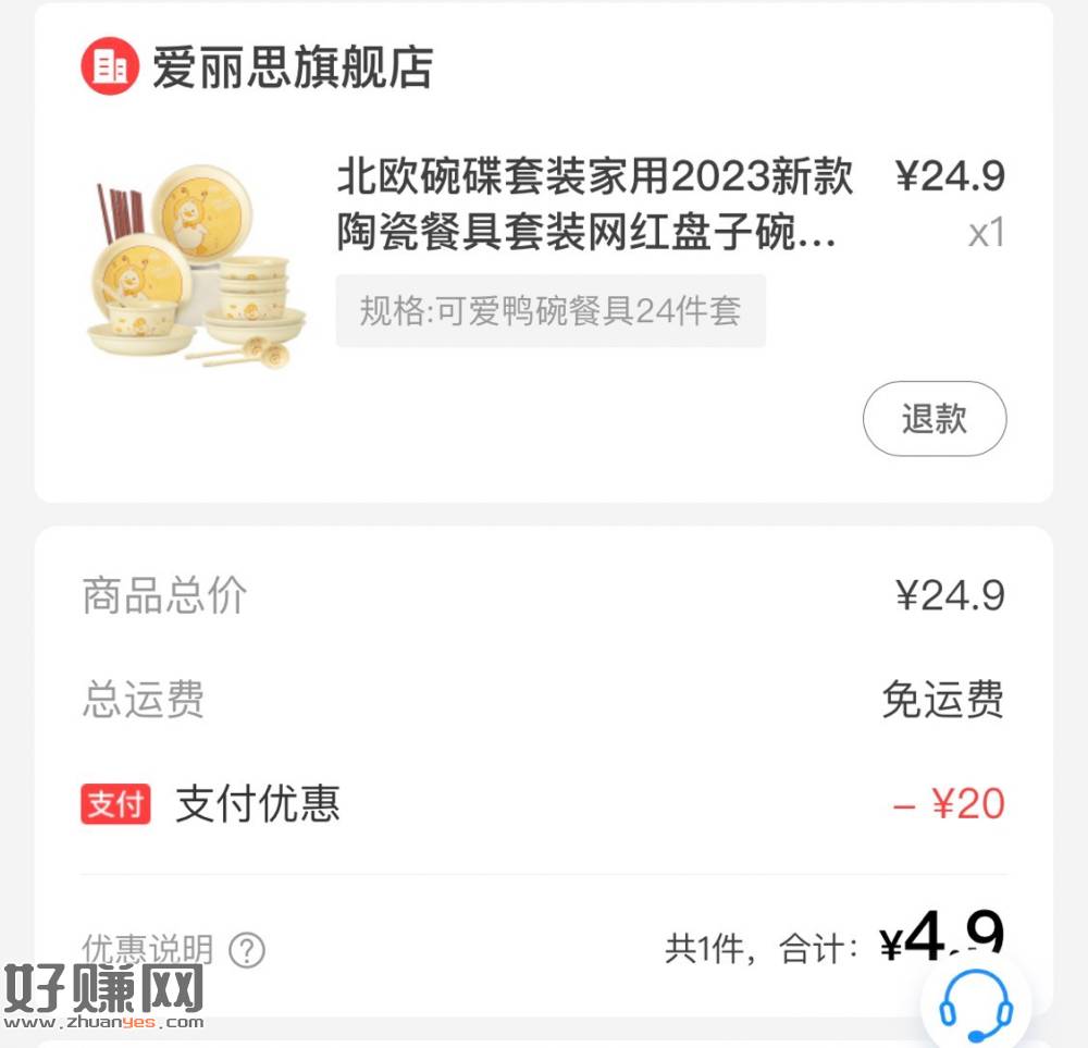 zfb-zfb会员-积分兑换39积分+4.9元:餐具24件t