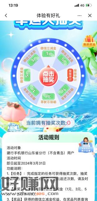 建行山东约惠齐鲁体验有好礼幸运大抽奖,山东建行2次机会