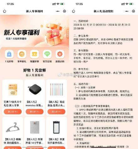 【OPPO商城新用户1元撸实物包邮】没买过的上!微信打开地址->任选一个商品,新用户1元包邮到手