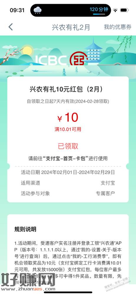 工银兴农通 工行消费季 10元