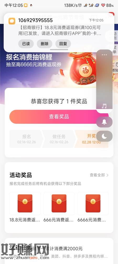 招行消费抽锦鲤元宵节开奖了