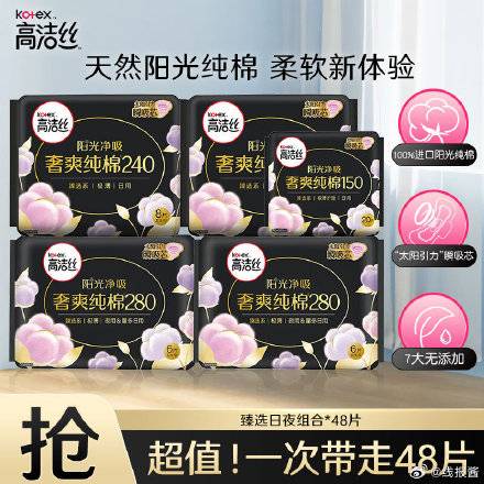 29.9元,高洁丝 臻选阳光纯棉日夜组合240+150+ 280mm 48片